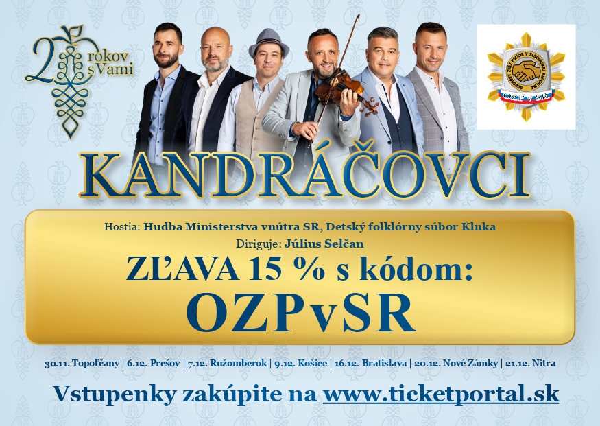 s radosťou oznamujeme, že ako naši členovia máte možnosť využiť 15 % zľavu na vstupenky na koncert Kandráčovci!